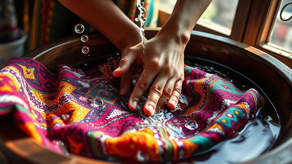 So, go ahead and handle those delicate handwoven fabrics with the utmost care—after all, they’re just pieces of art, right? It’s amusing how we often forget that even the most beautiful textiles need gentle treatment to stay stunning. Irony aside, your patience will pay off, and your artisan textiles will thank you by lasting generations. Who knew that a little careful washing could be the secret to keeping history alive in your hands?