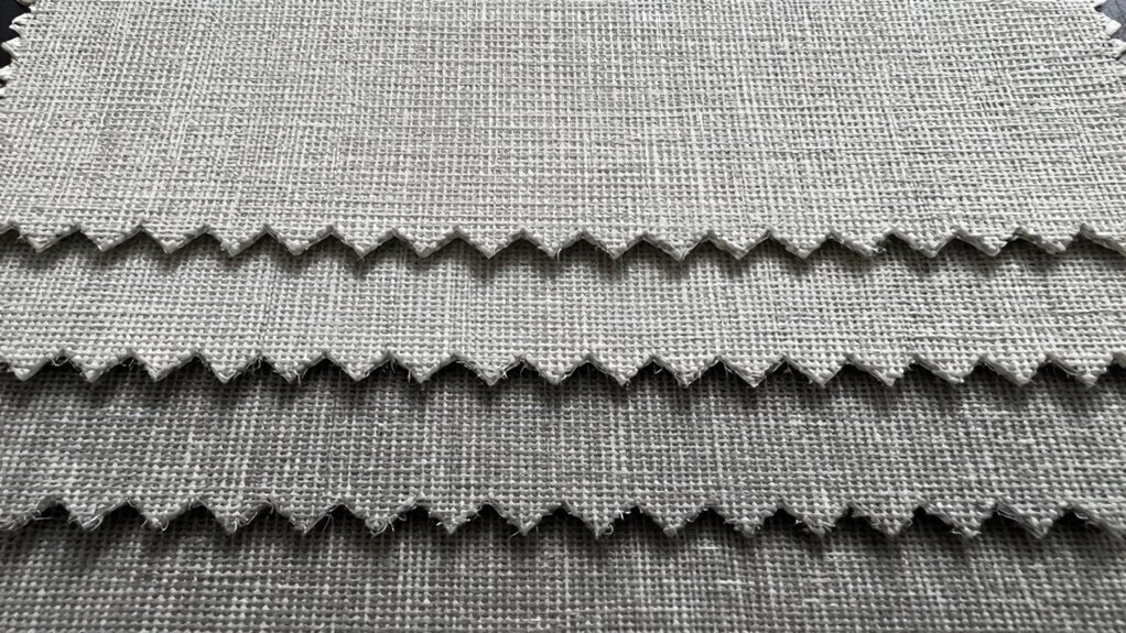 Fabric density plays a essential role in determining how durable a textile will be over time. When you examine a fabric’s density, you’re looking at how closely the fibers are woven together. This tightness directly influences the fiber weave, which is the pattern in which fibers are interlaced, and ultimately impacts the textile’s strength and resilience. A denser fabric means the fibers are packed more tightly, reducing the spaces where tears or frays can start. As a result, fabrics with higher density tend to withstand everyday wear and tear better, maintaining their appearance and function longer.