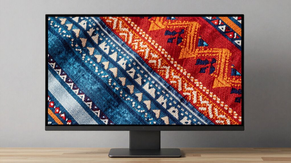 Monitor calibration considerably impacts textile color matching by ensuring color consistency across your workspace. When you regularly calibrate your monitor using calibration software, you maintain accurate color representation, preventing discrepancies that can ruin your designs. Proper calibration helps you see true colors, making it easier to match textiles precisely. This consistency is essential for quality control and client satisfaction, especially when working with detailed patterns and subtle color variations.