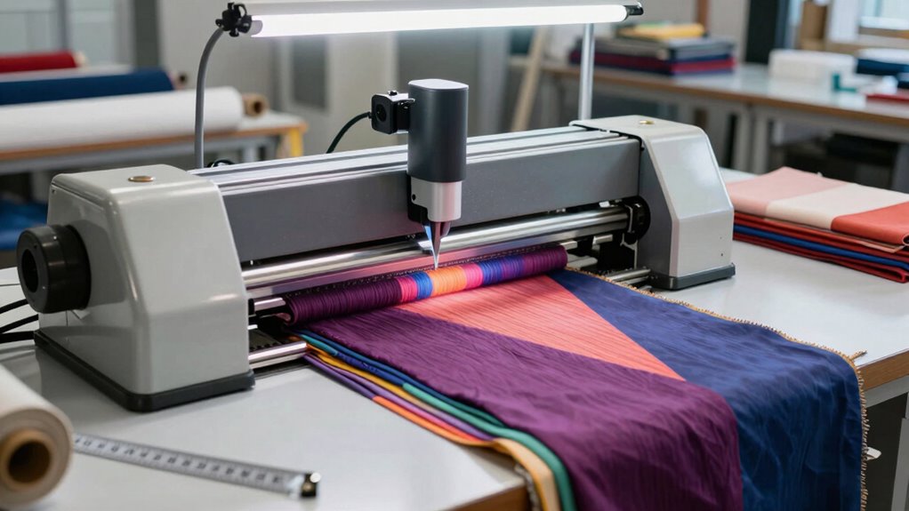 Using fabric technology, these machines can perform various cutting methods, such as straight, rotary, or laser cutting, each suited for different types of fabric and project requirements. Rotary cutters, for example, are great for soft textiles and allow for smooth, continuous cuts, while laser cutters handle delicate or detailed designs with high precision. These options give you the flexibility to choose the best method for your specific needs, ensuring efficiency and quality in every project.