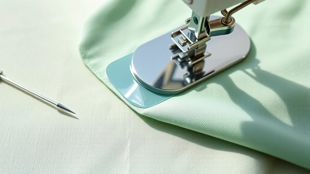Think of ironing as a gentle dance—too hot, and you might singe your project; too cool, and it won’t stick. I recommend setting your iron to a medium heat, around 300°F (150°C), for fusible web tape. Keep the steam off to prevent moisture from weakening the bond. Press gently and hold for about 10-15 seconds. This guarantees a strong, flawless finish every time.