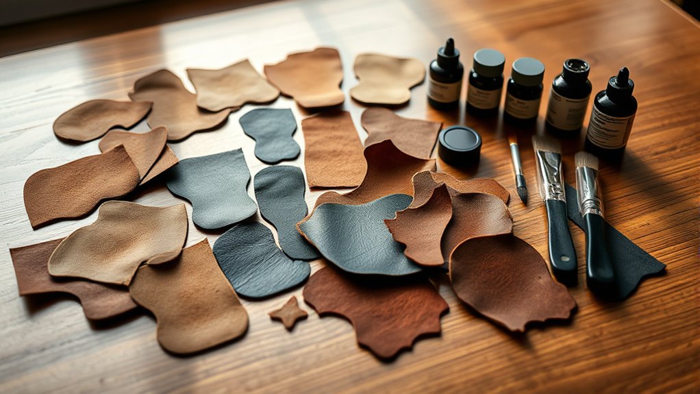 Yes, I can paint or dye repair patches to match your existing leather. I recommend using specialized leather colorants or dyes designed for this purpose, which allow for precise color matching. Just guarantee the patch is clean and dry before applying. I usually test the color on a hidden area first to get it right. With patience, you can make the repair blend seamlessly, almost invisible.