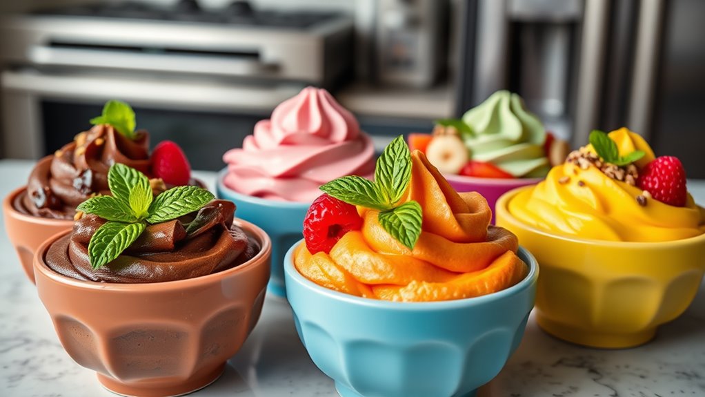 Choosing the right Ninja Creami Deluxe recipes depends on having a diverse selection that keeps things interesting. A variety of recipes lets me make everything from classic ice cream and gelato to invigorating sorbets and smoothies. Including different flavor profiles and mix-ins means I can customize each treat to suit my mood or dietary needs. I also look for recipes that cater to all skill levels, so I can try simple options or challenge myself with more advanced techniques. Having multiple recipes with unique ingredient combinations sparks creativity and helps me explore new flavor pairings. Most importantly, variety keeps me motivated to use the machine regularly, preventing dessert fatigue and ensuring I always have fresh ideas to satisfy my sweet tooth.