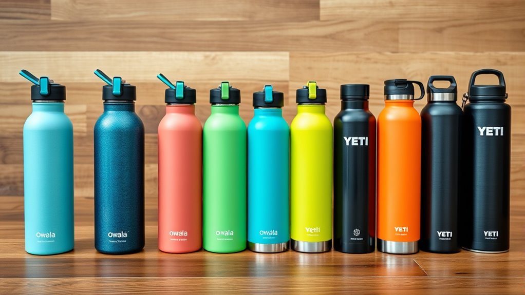 If I had to pick between Owala and YETI in 2025, it depends on what you need. YETI offers rugged durability and excellent insulation, perfect for outdoor adventures. Owala provides lighter, more affordable options with innovative spill-proof lids, great for daily use and active lifestyles. Both brands are reliable, but if you want premium performance or budget-friendly choices, there’s something for everyone. Keep exploring for more details to find your ideal water bottle.