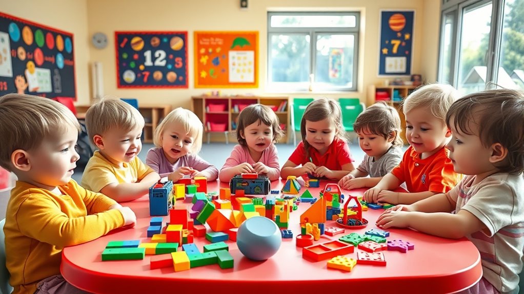 Choosing the right STEM toys for toddlers means paying close attention to their developmental stage to guarantee the toys are both safe and engaging. For children aged 1 to 3, it’s vital to select toys that match their current abilities and learning levels. Always check the packaging for clear age recommendations to make sure the toy is appropriate. Look for non-toxic materials and safety features like rounded edges and secure magnets, which are essential for this age group. Avoid toys with small parts that could pose choking hazards for toddlers under age 3. Opt for simple, intuitive designs that align with their motor skills and cognitive development. By choosing age-appropriate toys, you create a safe environment that encourages exploration and learning without frustration or risk.