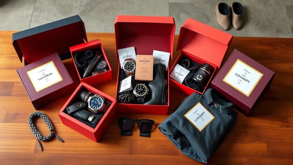 A wide variety of product options is essential for keeping a men’s subscription box exciting and satisfying. When the selection spans different categories—like snacks, gadgets, grooming, or accessories—it caters to diverse interests and helps maintain your interest over time. A extensive range also increases the chance of discovering new favorites, making each delivery feel fresh and engaging. Including multiple categories within one box adds versatility and value, making the subscription more worth it. Plus, a wide product range can reflect evolving tastes, ensuring that the box continues to meet your changing preferences. Ultimately, having a diverse selection justifies the cost by providing a comprehensive, enjoyable experience that keeps you looking forward to each delivery.