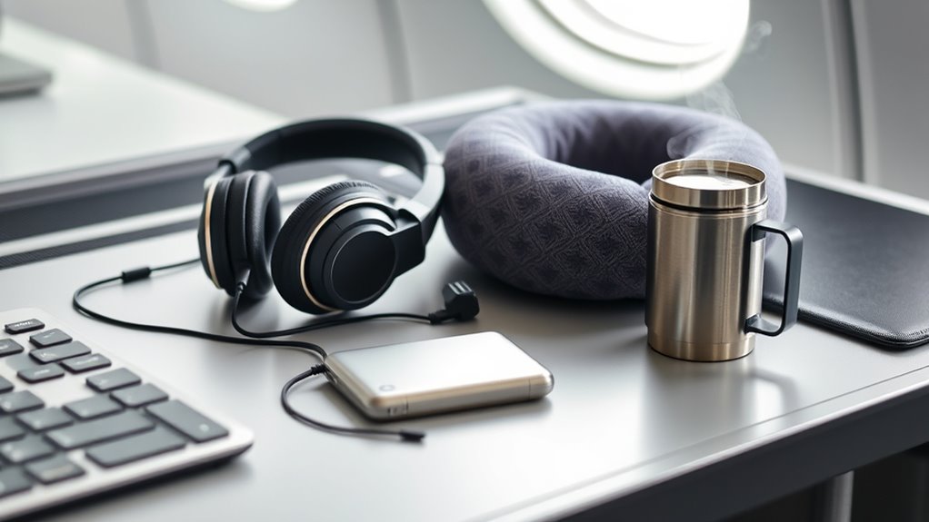 - Comfort-focused items like ergonomic neck pillows and calming candles improve relaxation during long flights or layovers.